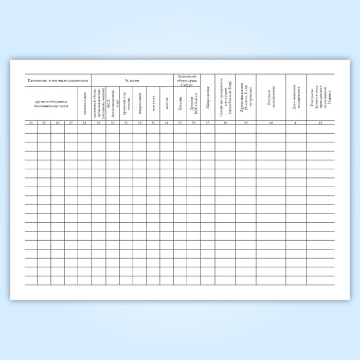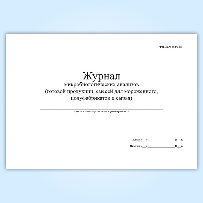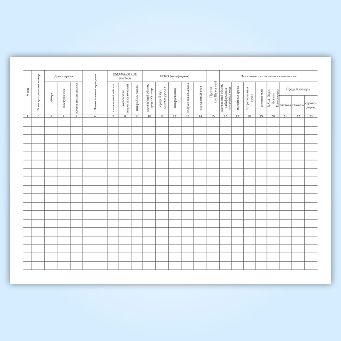 Журнал микробиологических анализов (готовой продукции, смесей для мороженного, полуфабрикатов и сырья)