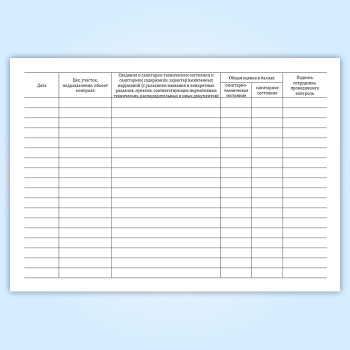 Журнал визуального производственного контроля санитарно-технического состояния и санитарного содержания помещений, технологических линий, оборудования, оснащения и других объектов производственного окружения содержит графы: