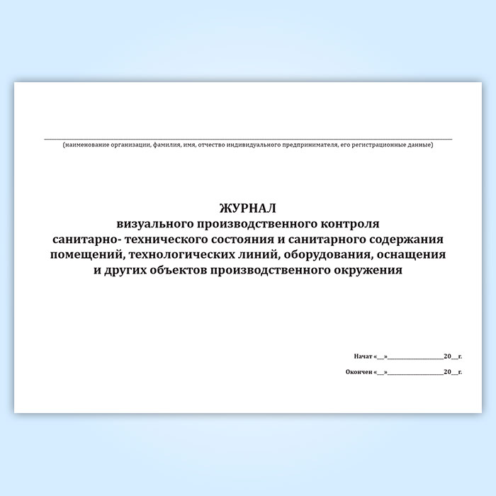 Журнал визуального производственного контроля санитарно-технического состояния и санитарного содержания помещений, технологических линий, оборудования, оснащения и других объектов производственного окружения