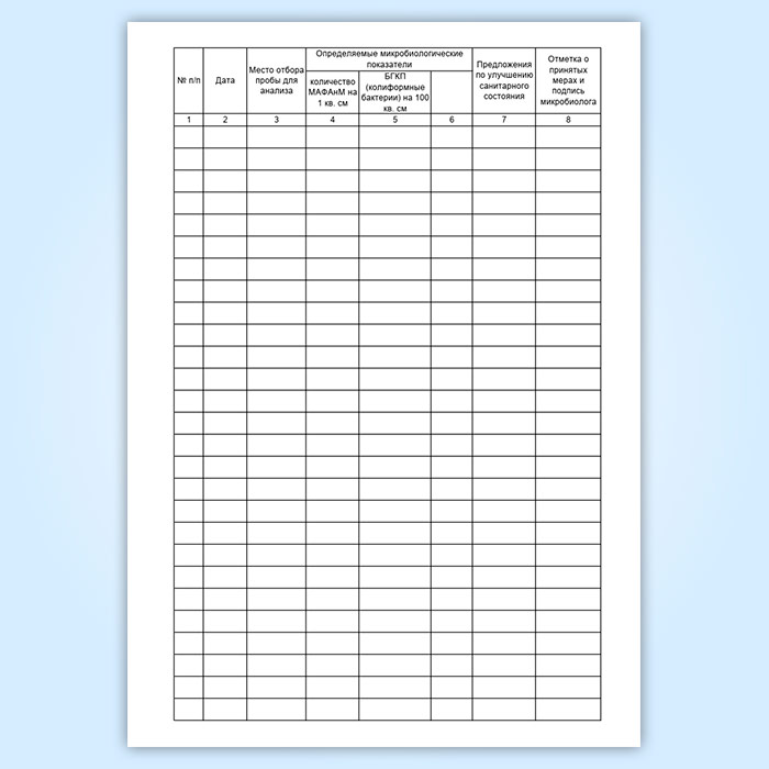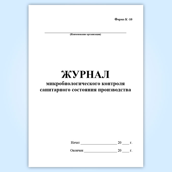 Журнал микробиологического контроля санитарного состояния производства (форма К-10)