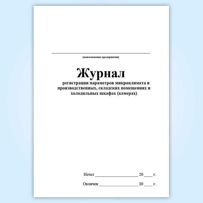 Журнал регистрации параметров микроклимата в производственных, складских помещениях и холодильных шкафах (камерах)