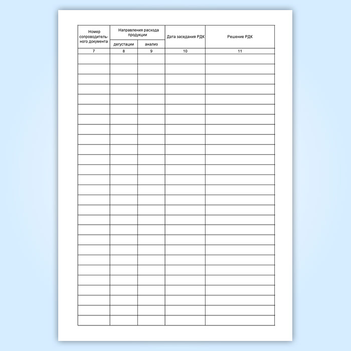 Графы журнала регистрации образцов, поступивших для дегустации: