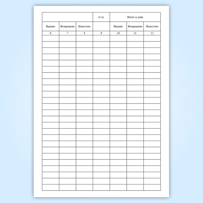 Графы для заполнения журнала учета столового белья и санспецодежды, выдаваемой под отчет работникам предприятия: