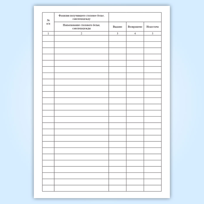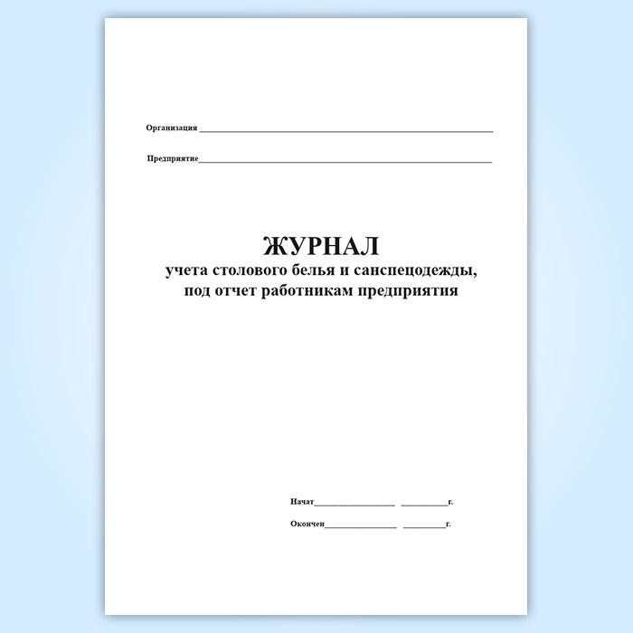 Журнал учета столового белья и санспецодежды, выдаваемой под отчет работникам предприятия