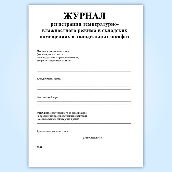 Журнал регистрации температурно-влажностного режима в складских помещениях и холодильных шкафах