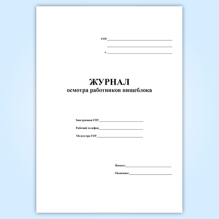 Журнал осмотра работников пищеблока по установленной форме ведется на каждом объекте общественного питания, осуществляющем хранение, реализацию продовольственных товаров и готовой пищи, независимо от формы собственности и принадлежности в соответствии с действующими Санитарными правилами и нормами. Журнал находится у руководителя объекта или иного должностного лица по его поручению и предъявляется по требованию представителей органов санитарно-эпидемиологического контроля, других контролирующих органов в соответствии с их полномочиями, в части касающейся соблюдения на объекте требований санитарного законодательства.