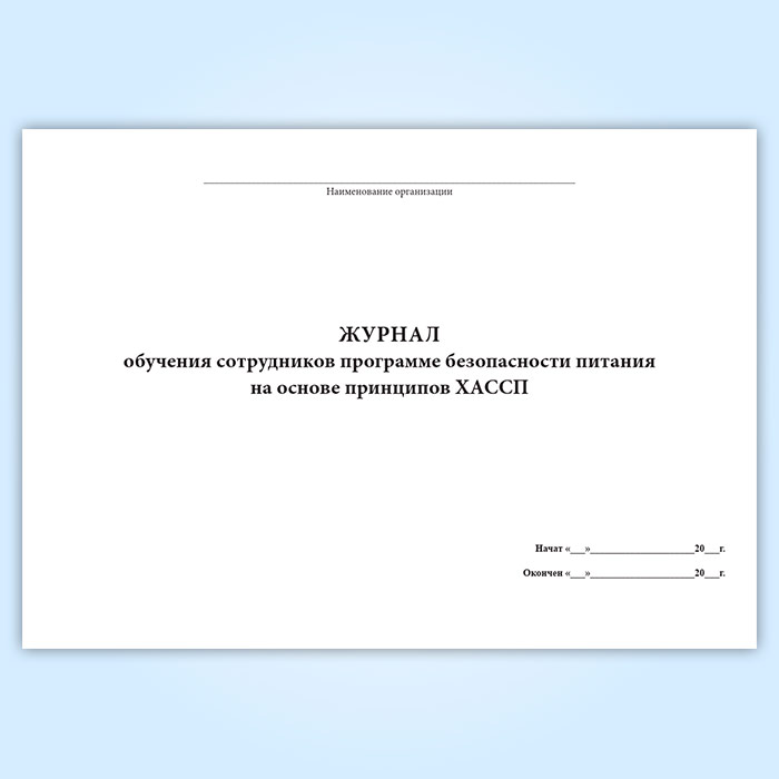 Журнал обучения сотрудников программе безопасности питания на основе принципов ХАССП