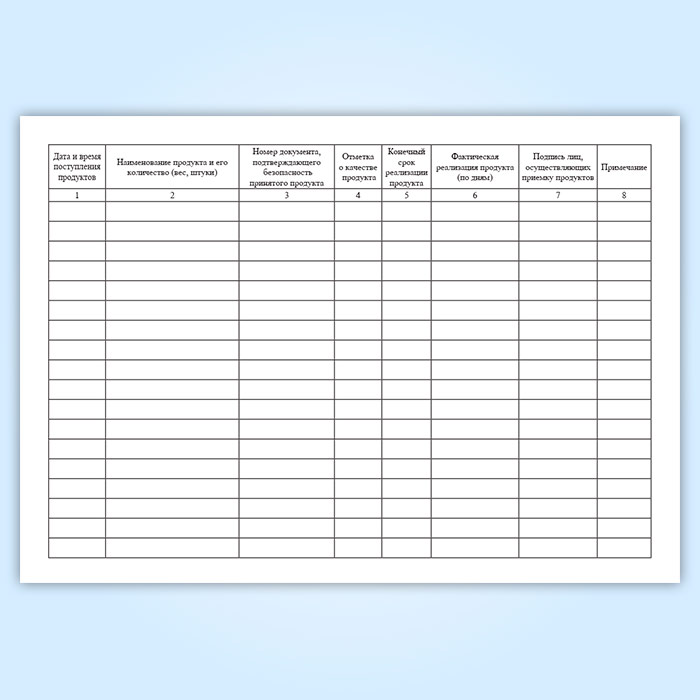 Журнал учета поступающей продукции (скоропортящейся, сырья) мало отличается от бракеражного журнала.