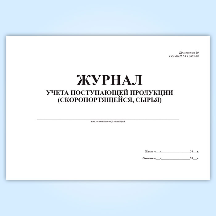 Журнал учета поступающей продукции (скоропортящейся, сырья)