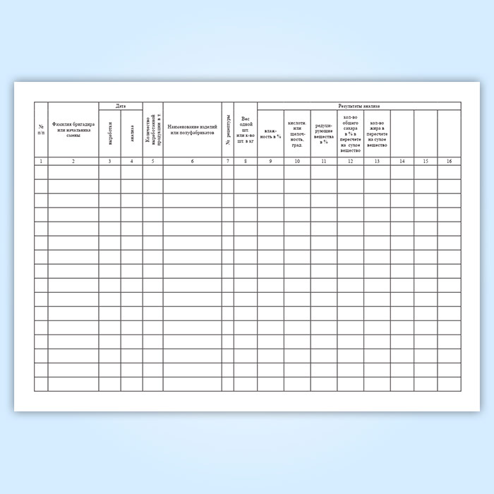 Журнал результатов анализов готовых кондитерских изделий и полуфабрикатов имеет графы: