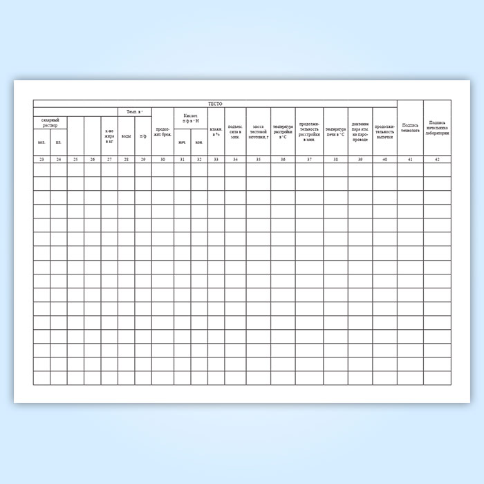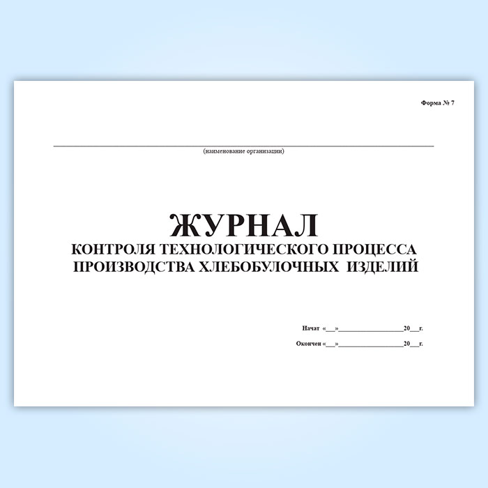 Форма журнала контроля технологического процесса производства хлебобулочных изделий соответствует Приложению к Примерному положению о производственных лабораториях предприятий хлебопекарной промышленности.