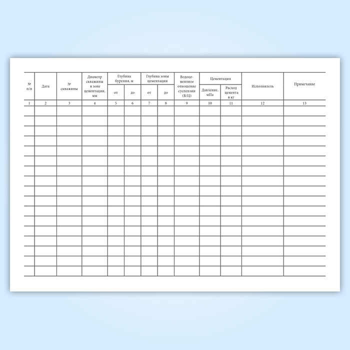 Для записи данных о бурении скважин и цементации пород при проходке ствола ведут журнал.