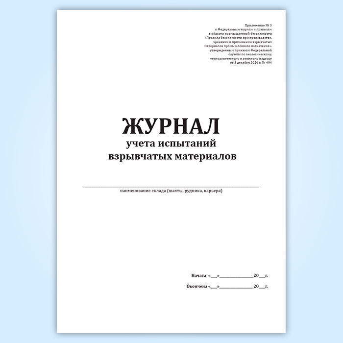 Журнал учета испытаний взрывчатых материалов