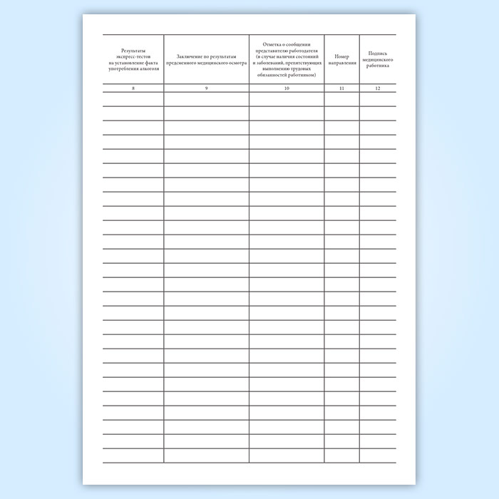 9 Заключение по результатам предсменного медицинского осмотра
