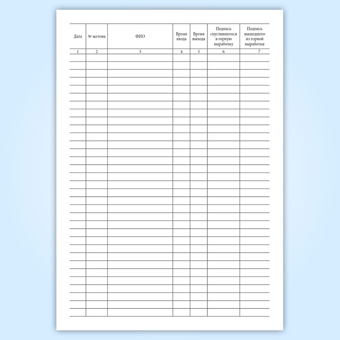 Журнал учета спуска и подъема людей имеет графы: