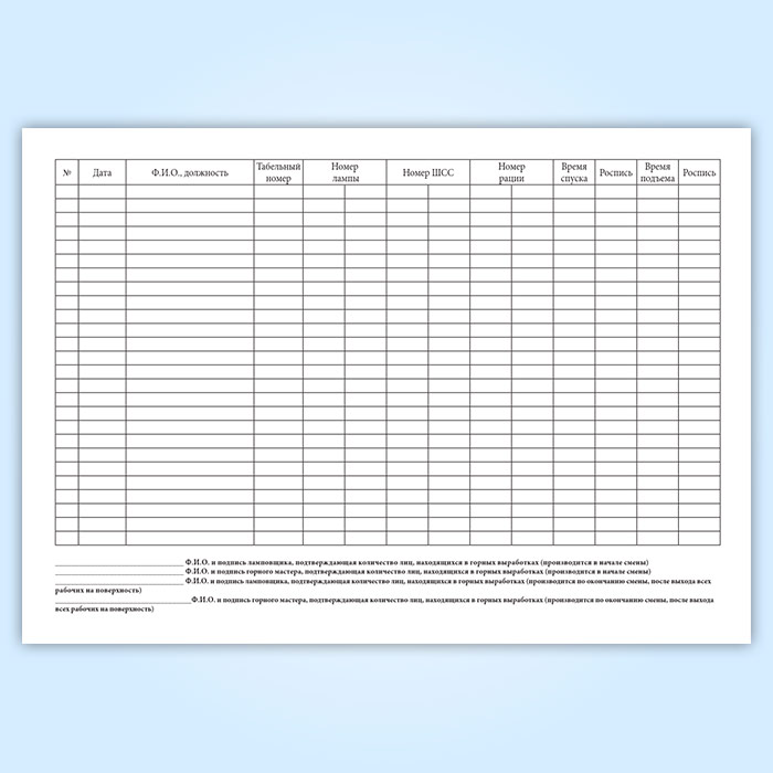 Книга учета лиц, спустившихся в горные выработки и вышедших на поверхность