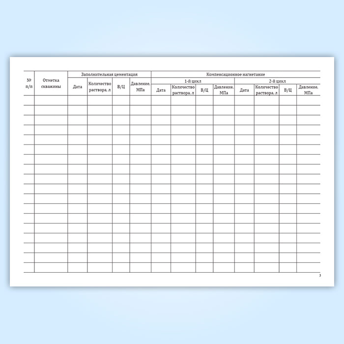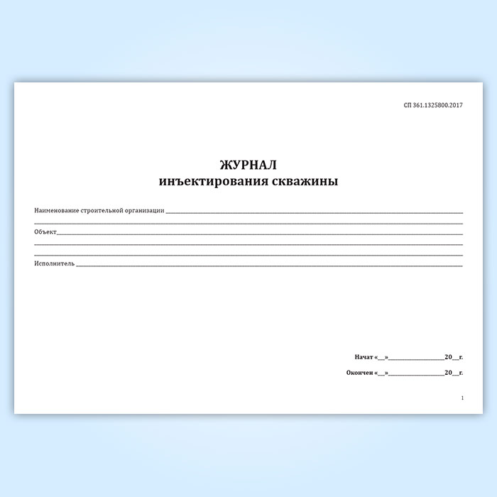 Форма журнала инъектирования скважины соответствует Приложению Ж к СП 361.1325800.2017 Здания и сооружения. Защитные мероприятия в зоне влияния строительства подземных объектов