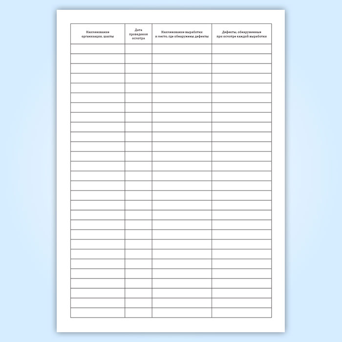 Журнал осмотра крепи и состояния горных выработок