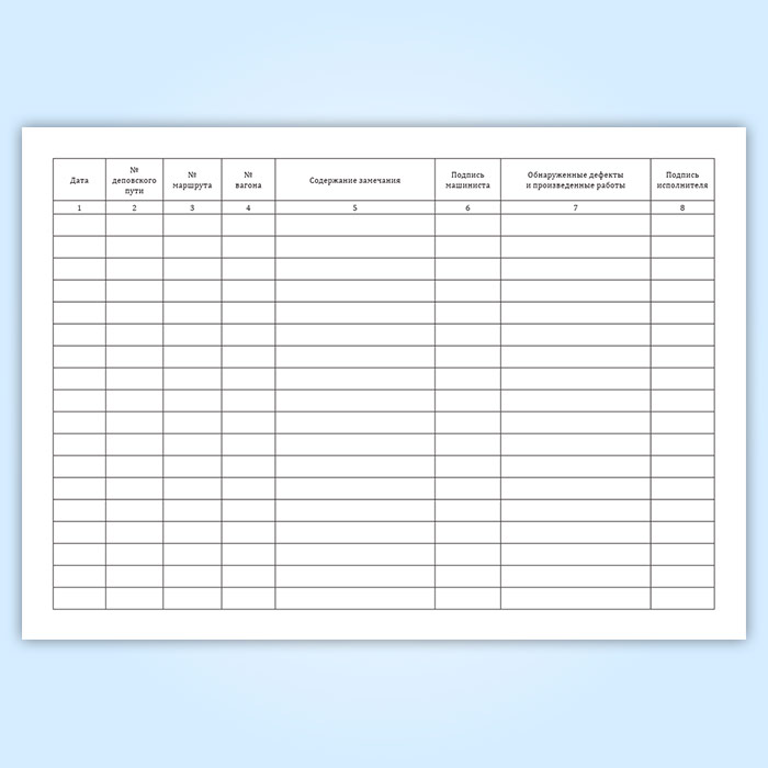 Графы секционной книги ремонта (ТУ-152 Метро):