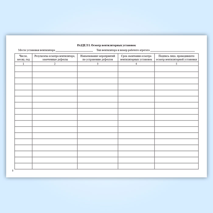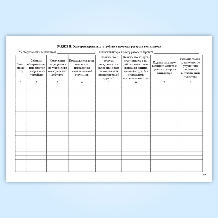 Книга осмотра вентиляторных установок и проверки реверсии имеет разделы: