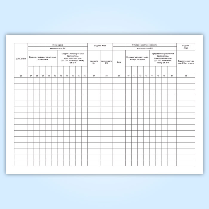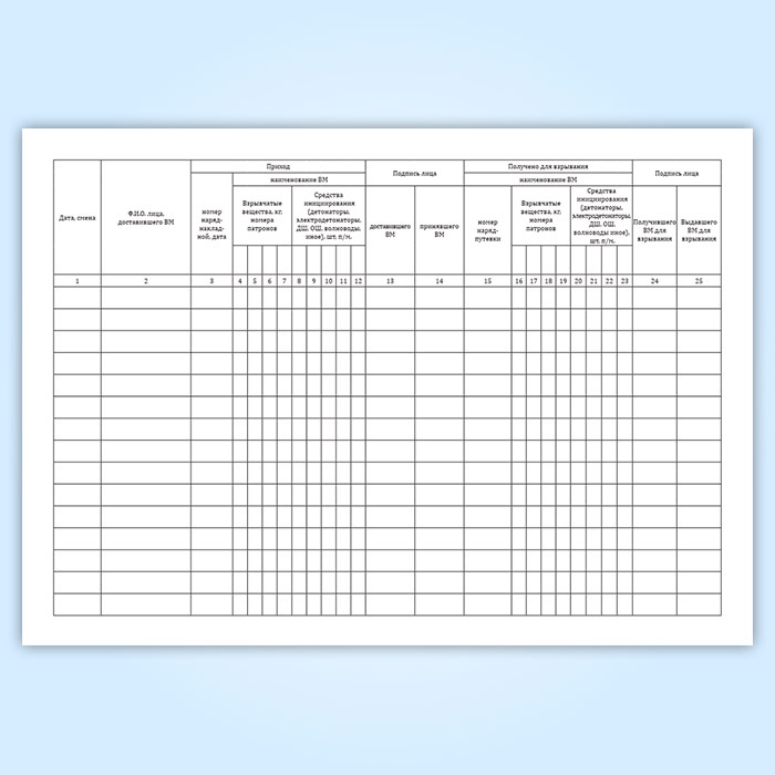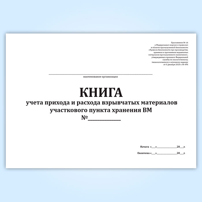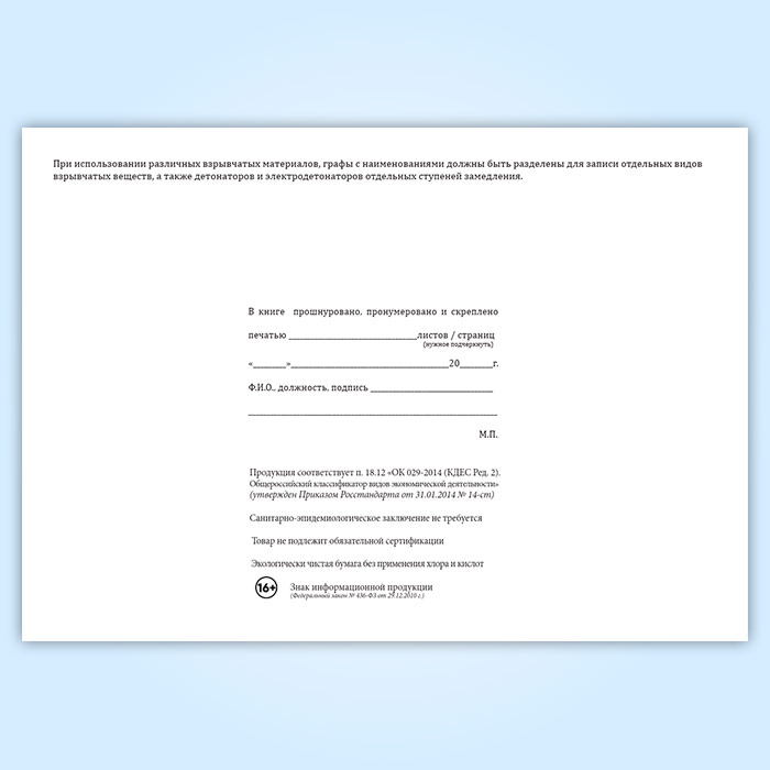 Форма книги соответствует Приложению 16 к Правилам безопасности при производстве, хранении и применении взрывчатых материалов промышленного назначения.