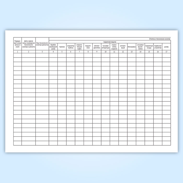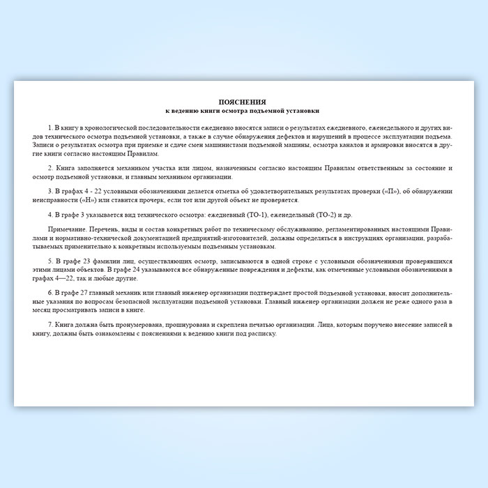 Форма книги осмотра подъемной установки соответствует Приложению 12 к Правилам безопасности при строительстве подземных сооружений.