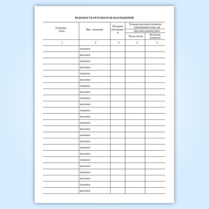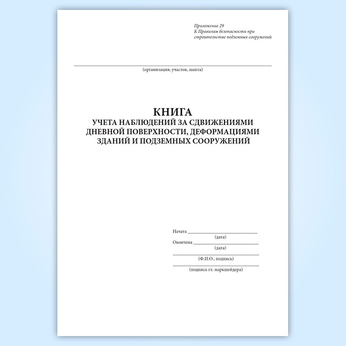 Книга учета наблюдений за сдвижениями дневной поверхности, деформациями зданий и подземных сооружений