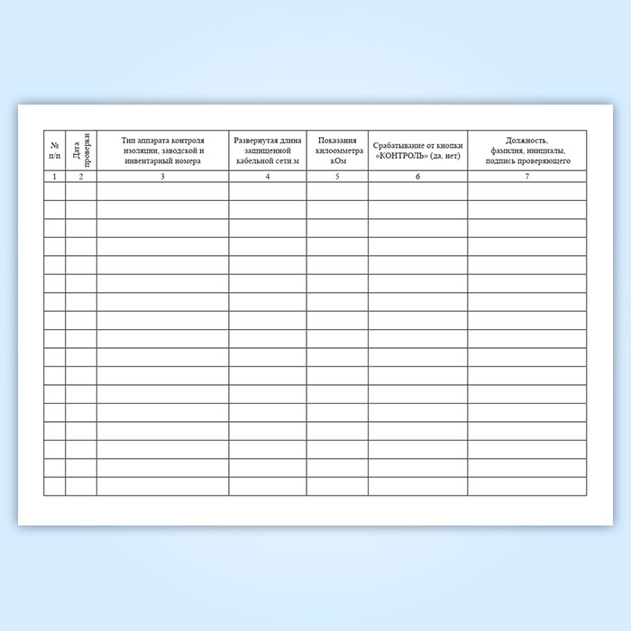 Журнал учета проверок исправности устройств контроля изоляции электрооборудования и электросетей
