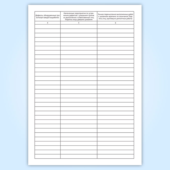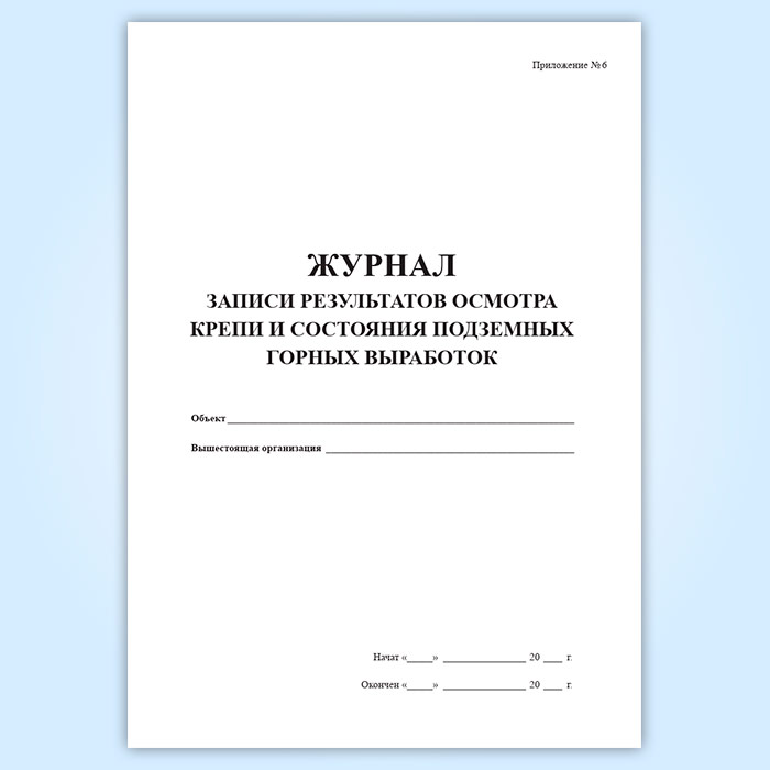Журнал записи результатов осмотра крепи и состояния подземных горных выработок