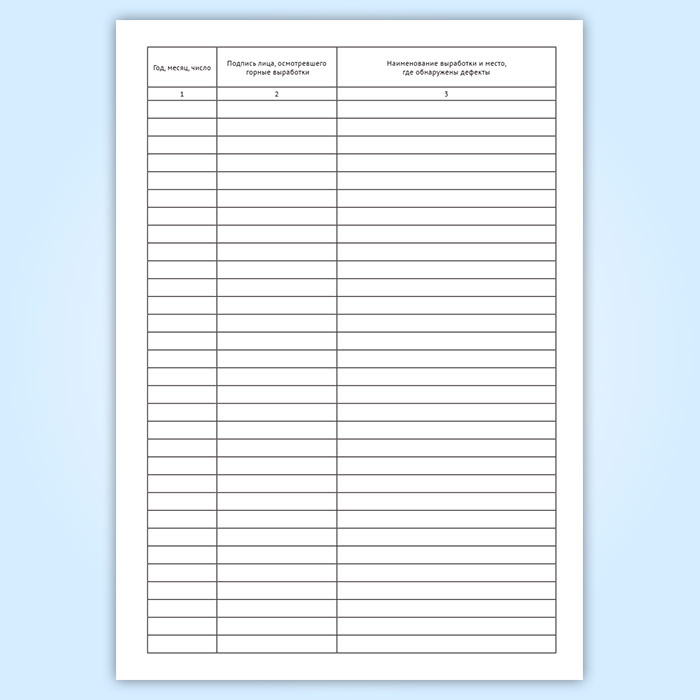 Журнал записи результатов осмотра крепи и состояния подземных горных выработок имеет графы: