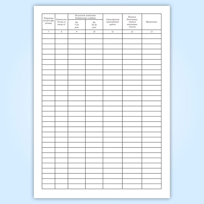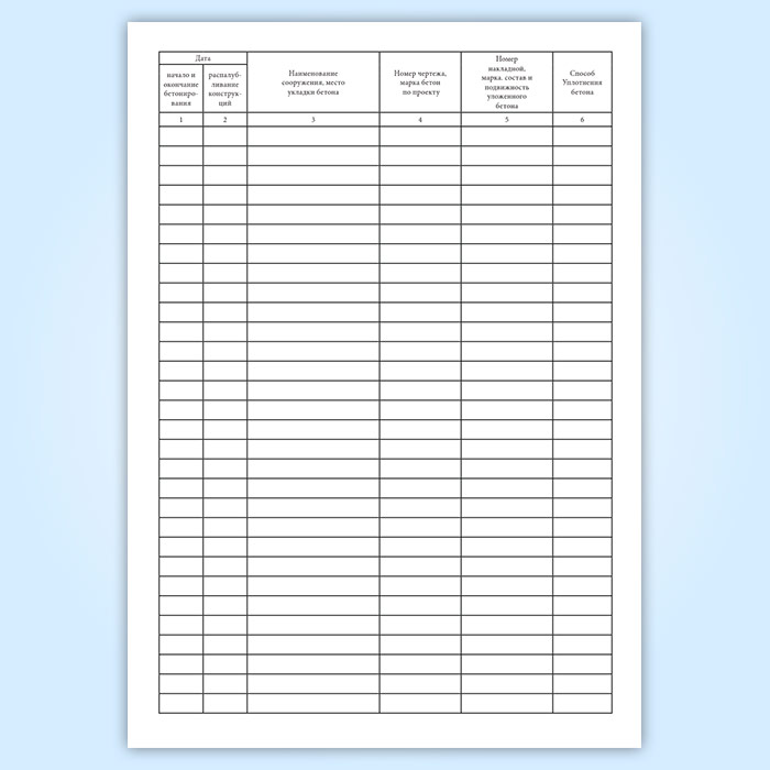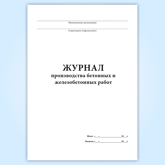 Журнал производства бетонных и железобетонных работ