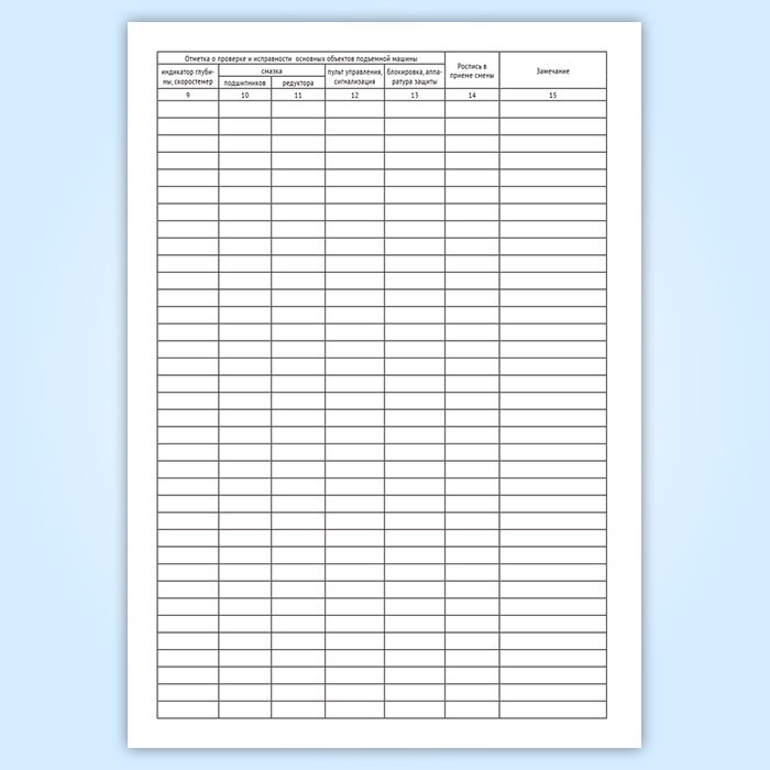 9-13. Отметка о проверке и исправности основных объектов подъемной машины