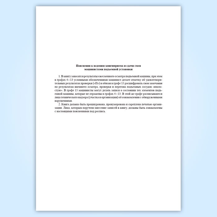 Книга приема и сдачи смен машинистами подъемной установки