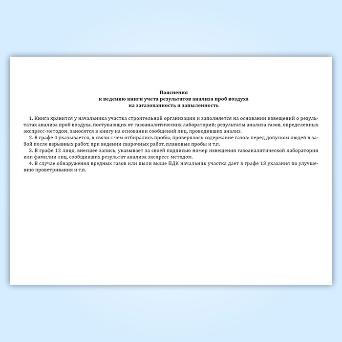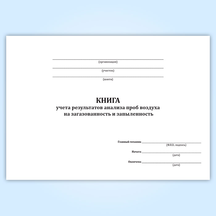 Книга учета результатов анализа проб воздуха на загазованность и запыленность