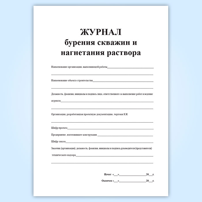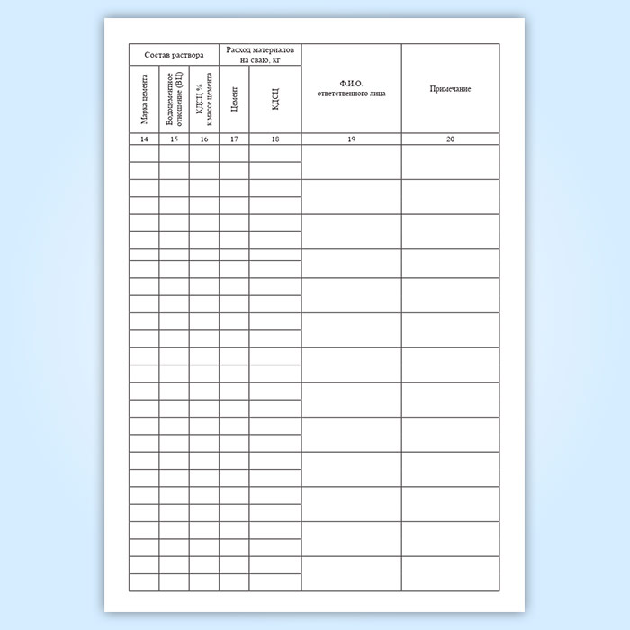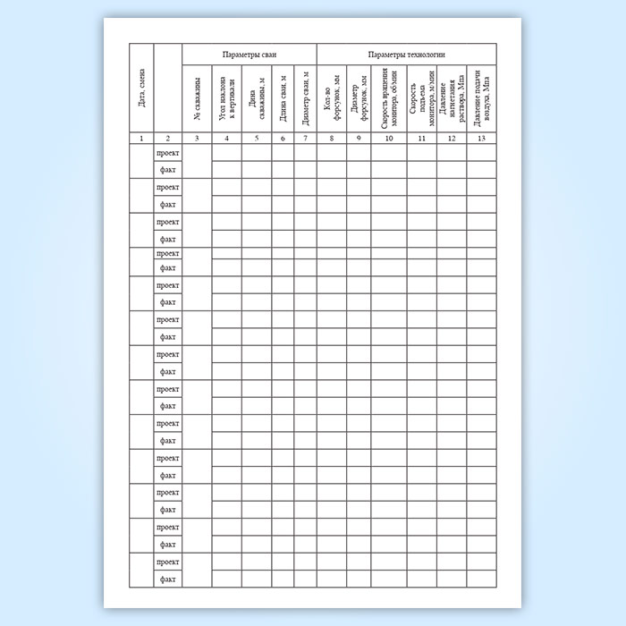 Журнал бурения скважин и нагнетания раствора имеет графы: