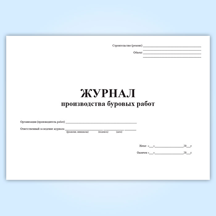 Журнал производства буровых работ по СТО Газпром 2-2-2-319-2009 Приложение Б является Приложением 6.7.В1 к Своду правил по проектированию и строительству. Метрополитены. СП 32-105-2004(№540).