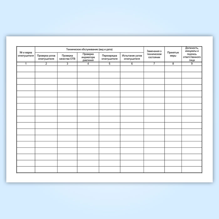 Журнал технического обслуживания огнетушителей