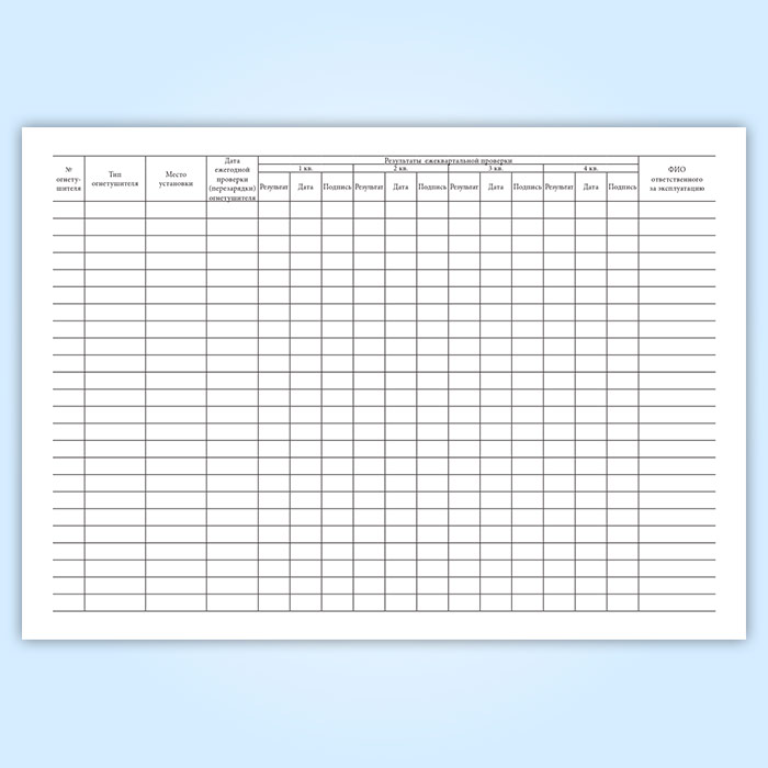 Документ нужен для упорядочивания информации и возможности контроля за приобретением, перезарядкой и другими нюансами, которые касаются хранения и эксплуатации оборудования для борьбы с огнем.