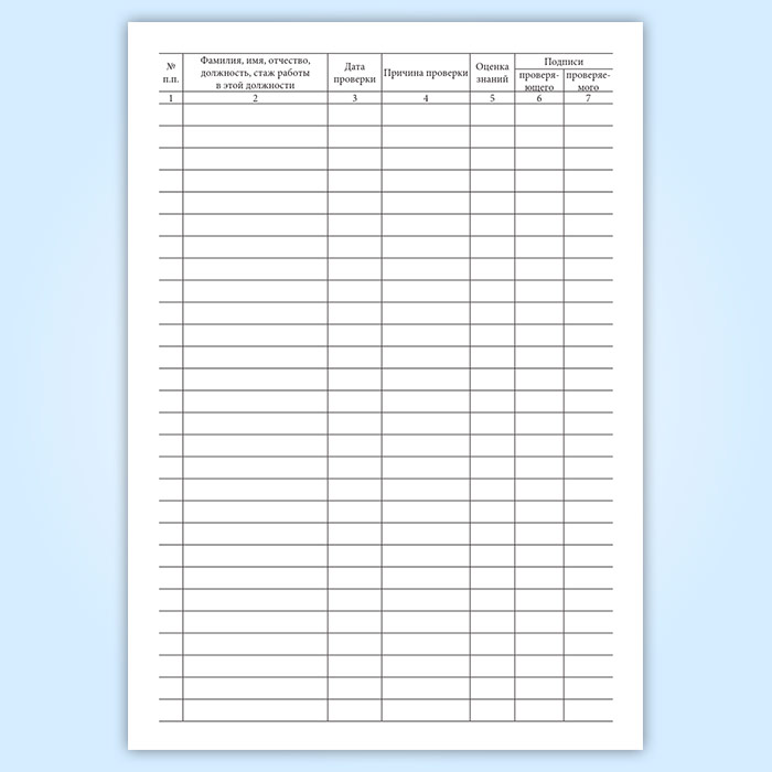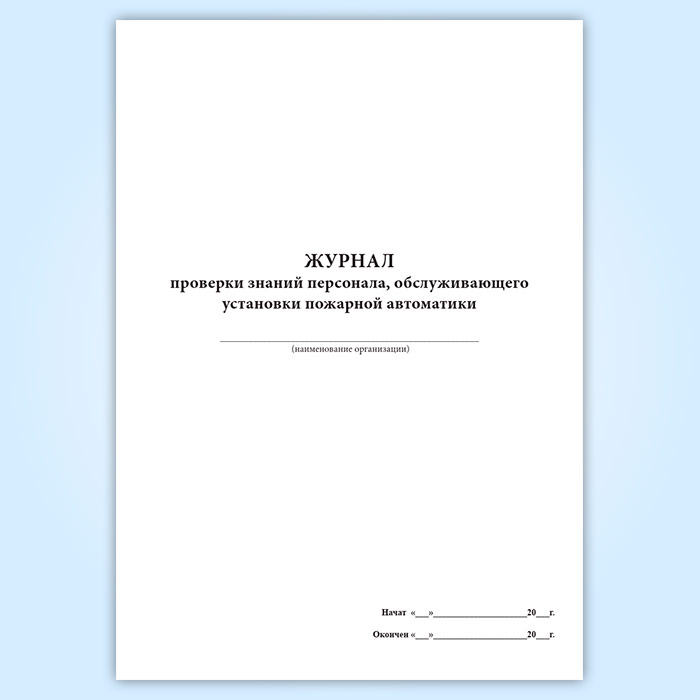 Журнал проверки знаний персонала, обслуживающего установки пожарной автоматики
