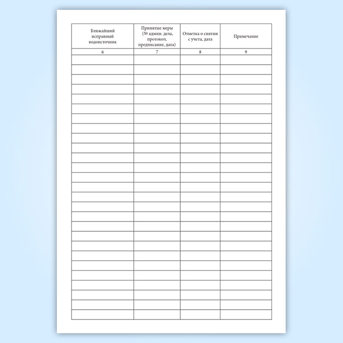 Журнал учета неисправных водоисточников