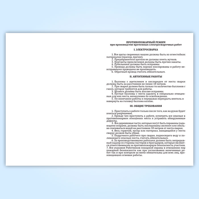 7. Все указания Работников пожарной охраны в отношении мер пожарной безопасности как при согласовании намеченных работ так и при контроле за ними обязательны для всех лиц, производивших огневые работы.