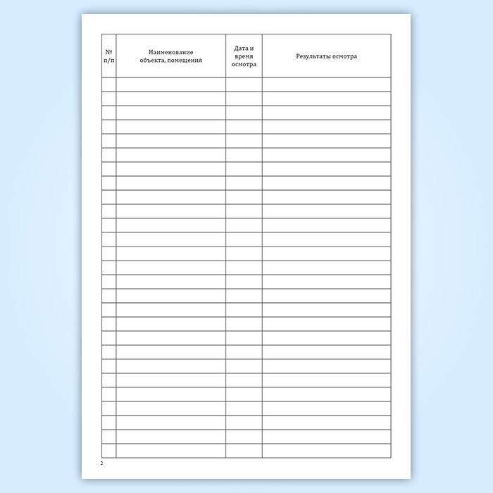 Журнал учета результатов осмотра служебных кабинетов (помещений) на предмет противопожарного состояния по окончании рабочего дня