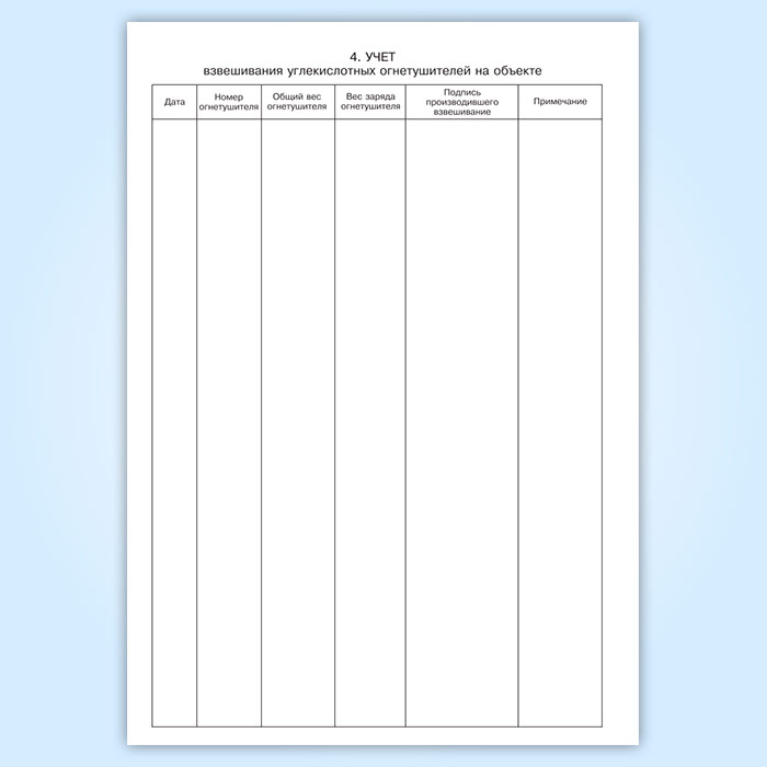 Раздел 4 Учет взвешивания углекислотных огнетушителей на объекте