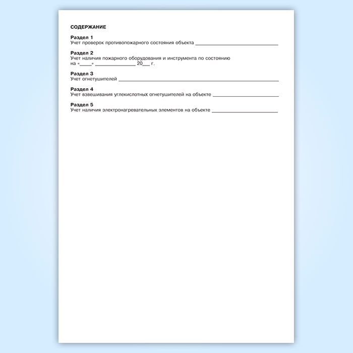 Журнал наблюдения противопожарного состояния объекта содержит разделы: