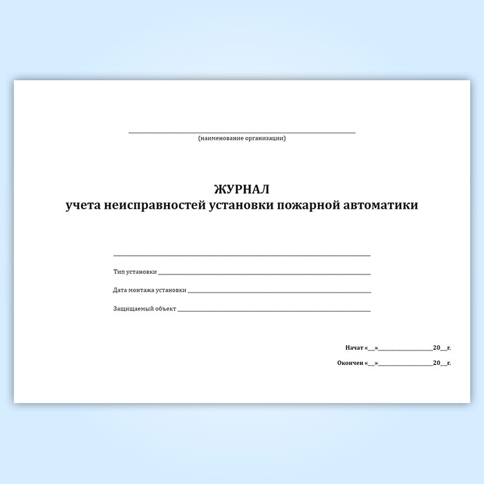 Форма журнала учета неисправностей установки пожарной автоматики соответствует Приложению 3 ППБ-0-148-87 " Правила пожарной безопасности для спортивных сооружений" , Приложению VIII к "ППБО-136-86. Правила пожарной безопасности для предприятий черной металлургии"