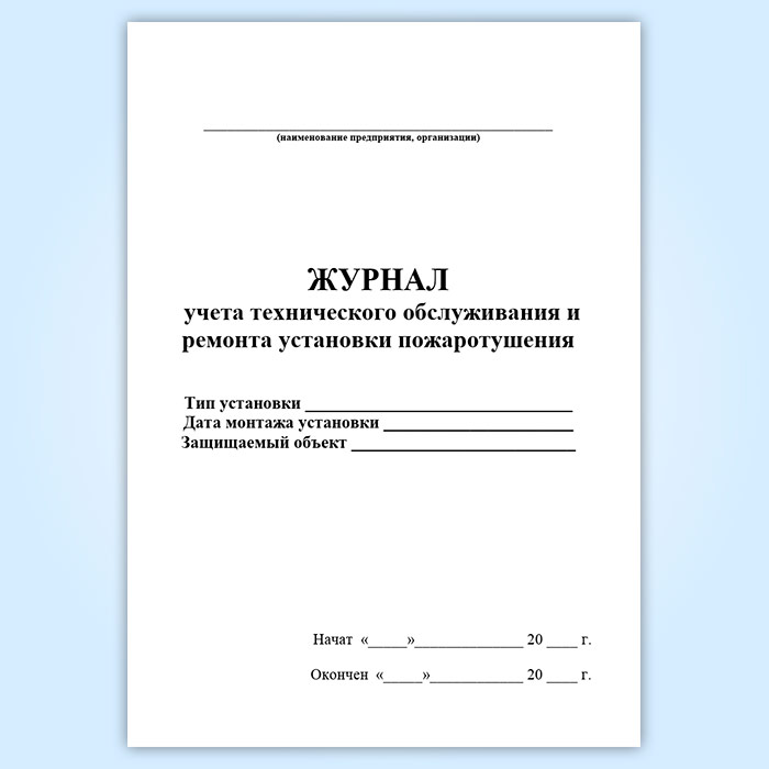 Журнал учета технического обслуживания и ремонта установки пожаротушения