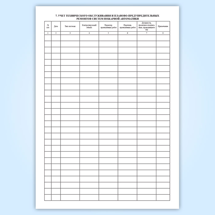 7. Учет технического обслуживания и планово-предупредительных ремонтов систем пожарной автоматики