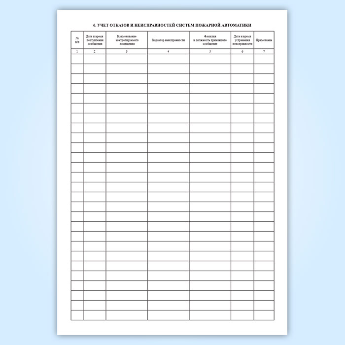 6. Учет отказов и неисправностей систем пожарной автоматики: