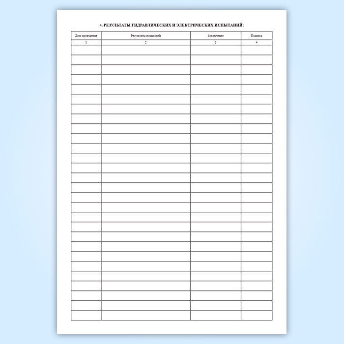 4. Результаты гидравлических и электрических испытаний: