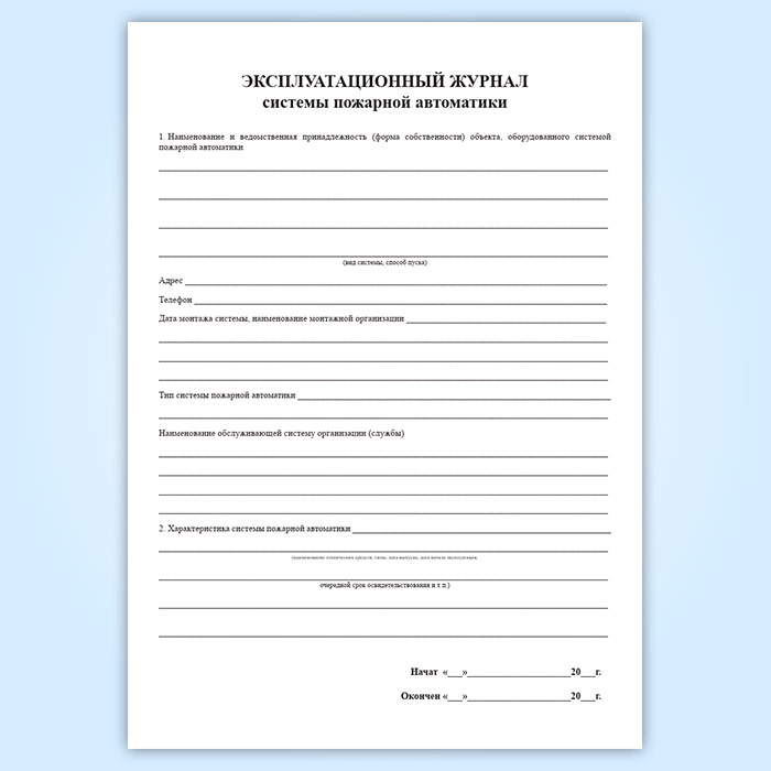 Эксплуатационный журнал системы пожарной автоматики